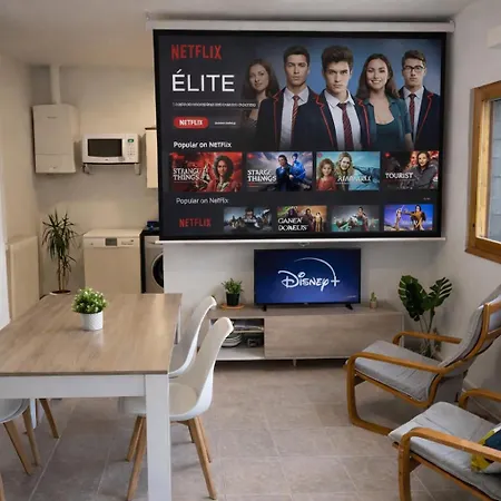 Juntamente com comodidades de auto-atendimento, tais como cozinha equipada, o apartamento Apto Espert L Cine L Garaje L Bbq I Tenis L Wifi proporciona aos hóspedes zona de refeições e uma área de refeições ao ar livre. A estação de comboios Avenida de Zaragoza está a cerca de 10 minutos de distância a pé. Piscina ao ar livre pode ser encontrada no local.